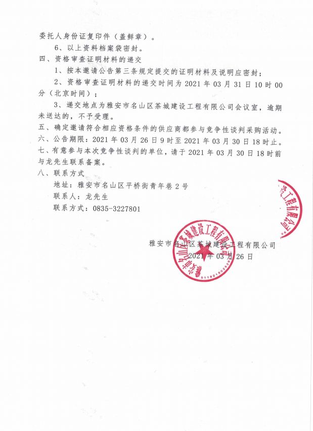 雅安市名山區皇茶大道安置房項目 護窗圍墻欄桿競爭性談判邀請公告